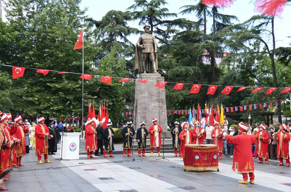 Başkan Genç, Trabzon’un tarihteki önemine değinerek “Kadim şehrimiz Trabzon için en değerli sermayemiz hiç şüphesiz insan kaynağımızdır. Güçlünün haklı sayılmaya çalışıldığı günümüz dünyasında bu şehrin evlatlarının ürettiği İHA’lar, SİHA’lar ve daha niceleri ülkemizin gücüne güç katmakta, caydırıcı gücünü artırmakta ve milli bağımsızlığımızı da pekiştirmektedir. Bu nedenle Trabzon ve Trabzon insanına, her alanda güç katmak yalnızca bu şehre değil, bütün ülkemize aynı zamanda güç katmaktır. Bu vesileyle burada hususen yer alanda gençlerimize özellikle seslenmek istiyorum. Merhum Nurettin Topçu Hocamızın bir sözü var: 'Asırların icaplarına göre değişen şekil ve kalıplar ne olursa olsun ebedî yaşayacak olan ruh Fatih'lerin, Yavuz'ların, Yıldırım'ların ruhudur.' Sevgili gençler; Fatih Sultan Mehmet Han’ın 21 yaşında İstanbul’u, 29 yaşında ise Trabzon’u, fethetmesini sağlayan ruh, zaferlerin kazanıldığı ve medeniyetlerin inşa edildiği ruhtur. Sizler bu ruhu günümüz dünyasında ilimde, teknolojide, kültürde, üretimde, sanatta ve birçok alanda yaşatacaksınız. Çünkü her çağın kendi Fatih’leri vardır ve bu çağın Fatih’leri proje üreten, geliştiren, keşif yapan, sahada ter döken, fikir üreten ve ürettiğini insanlığın faydasına sunan siz gençlersiniz. Bu vesileyle sadece Trabzon’un değil, ülkemizin birçok mukaddes toprağını vatan yapmak uğruna can veren başta Fatih Sultan Mehmet Han olmak üzere bütün kahramanlarımızı, aziz şehitlerimizi rahmetle ve minnetle anıyorum. Ruhları şad, mekanları cennet olsun. Rabbim, bizlere onların miraslarına layık olmayı nasip eylesin” dedi. Program, Büyükşehir Belediyesi’nin mehter takımının gösterisi ile devam etti.