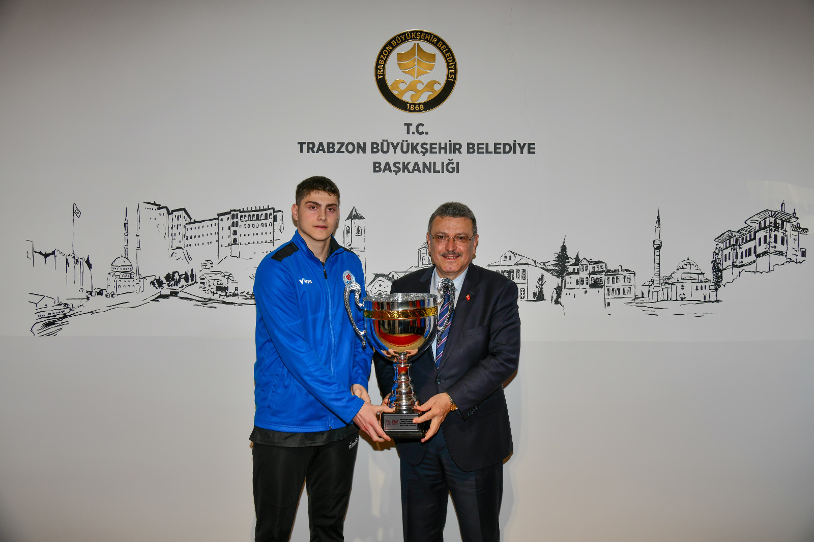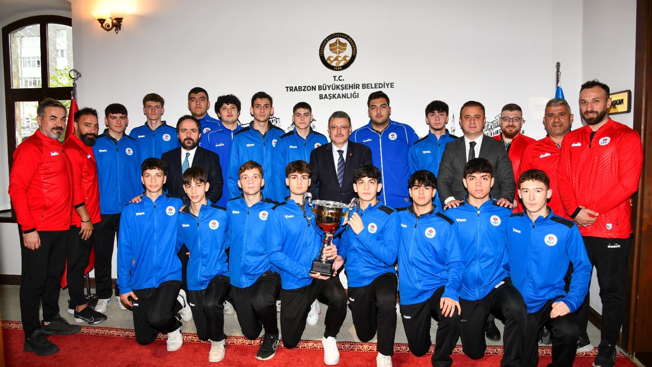 Takımla gurur duyduklarını belirten Başkan Genç, “Sporcularımızla bir kez daha gurur duyduk. Üst üste iki sezon namağlup şekilde Türkiye şampiyonu olmak kolay değil. Gençlerimiz, sadece sporla değil, duruşlarıyla da Trabzon’umuzun adını en iyi şekilde temsil ettiler. Başta antrenörümüz Selim Karaağaçlı olmak üzere tüm oyuncularımızı gönülden kutluyorum. Gençlerimizin yanında olmaya devam edeceğiz. Başarılarının karşılığını sadece sözle değil, destekle de vereceğiz. Bu doğrultuda gençlerimize prim sözü verdik. Başarılarının devamını diliyorum” dedi. Ziyaret Başkan Genç ile sporcuların şampiyonluk kupasıyla çektirdikleri hatıra fotoğrafıyla sona erdi.