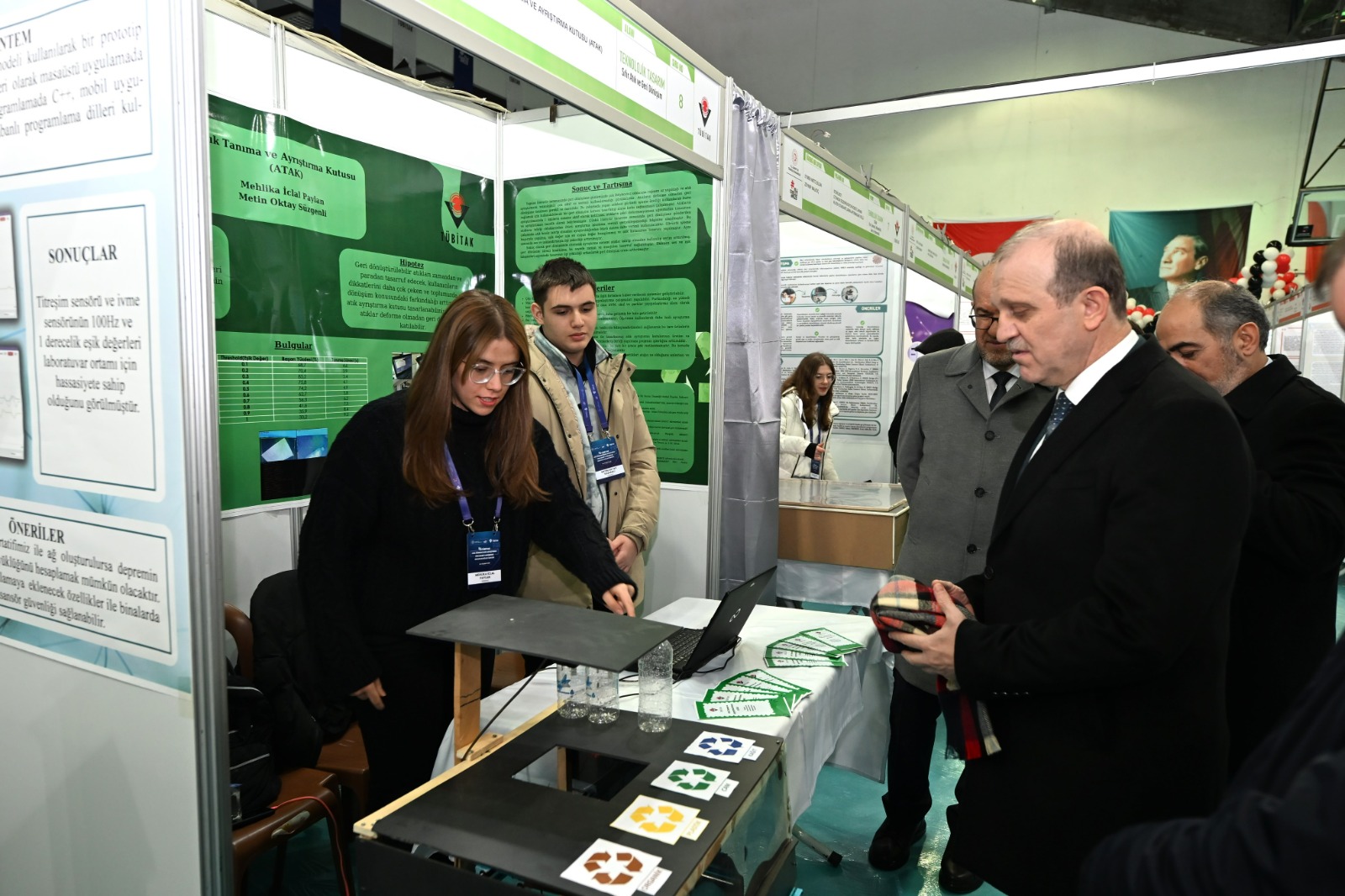 56. TÜBİTAK Lise Öğrencileri Araştırma Projeleri Yarışması Erzurum Bölge Sergisi'nin açılışı, Karadeniz Teknik Üniversitesi (KTÜ) Rektörü Prof. Dr. Hamdullah Çuvalcı’nın iştiraki ile KTÜ Hasan Polat Beden Eğitimi ve Spor Merkezi'nde gerçekleştirildi. Açılışta bir konuşma gerçekleştiren Rektör Prof. Dr. Hamdullah Çuvalcı, Üniversite olarak böyle bir organizasyona ev sahipliği yapmaktan büyük bir memnuniyet duyduğunu dile getirerek “TÜBİTAK tarafından düzenlenen bu tür yarışmalar, gençlerin yeteneklerini sergilemelerine ve akademik dünyaya adım atmalarına fırsat tanıyor. Üniversite olarak bilime ve gençlerimizin inovatif fikirlerine her zaman destek vermeye devam edeceğiz. Açılış vesilesi ile sergiye tüm halkımızı davet ediyorum.” dedi. Rektör Prof. Dr. Hamdullah Çuvalcı konuşmasının ardından 10 ilden gelen uygulamalı projelerin yer aldığı stantları gezdi ve genç mucitlerle sohbet etti.