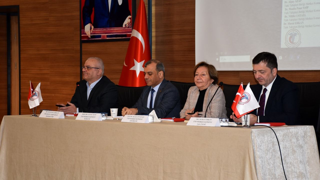 Toplantıya Türk Tabipleri Birliği Merkez Konseyi Başkanı Prof. Dr. Alpay Azap, 2. Başkanı Dr. Mualla Pınar Saip ve Merkez Konseyi Üyesi Dr. Murat Erkan katıldı.