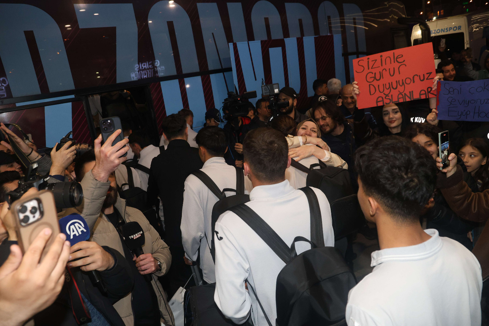 UEFA Gençlik Ligi’ni ikinci olarak tamamlayarak tarihi bir başarıya imza atan U19 Takımı, Trabzon’a döndü. Genç oyuncuları Trabzon Havalimanı’nda aileleri ve taraftarları büyük bir coşkuyla karşıladı. Havalimanında tezahüratlar eşliğinde karşılanan takıma sevgi gösterilerinde bulunuldu. Taraftarlar, Teknik Direktör Eyüp Saka’ya çiçek takdim ederek bu gurur verici başarı için teşekkür etti.