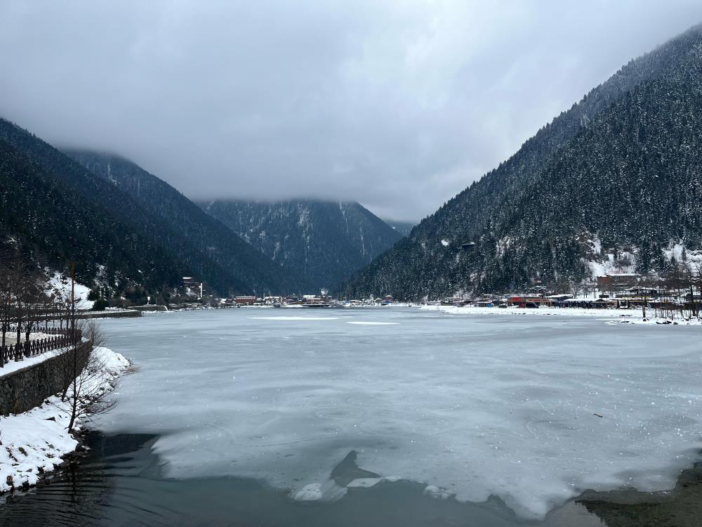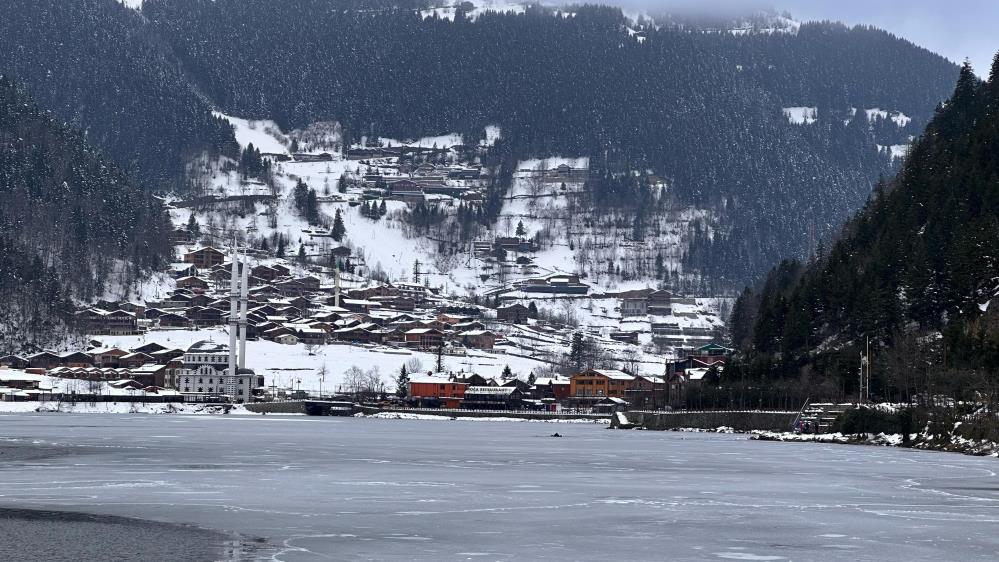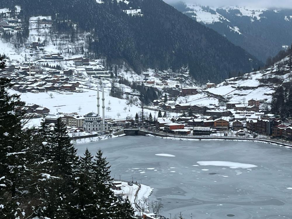 Bin 90 rakımlı doğal güzellikleri ile ünlü Uzungöl’ün büyük bölümü hava sıcaklığının sıfırın altına düşmesinin ardından donarken, ortaya seyrine doyumsuz manzaralar çıktı. Uzungöl’ün donmuş hali havadan dron ile görüntülendi.