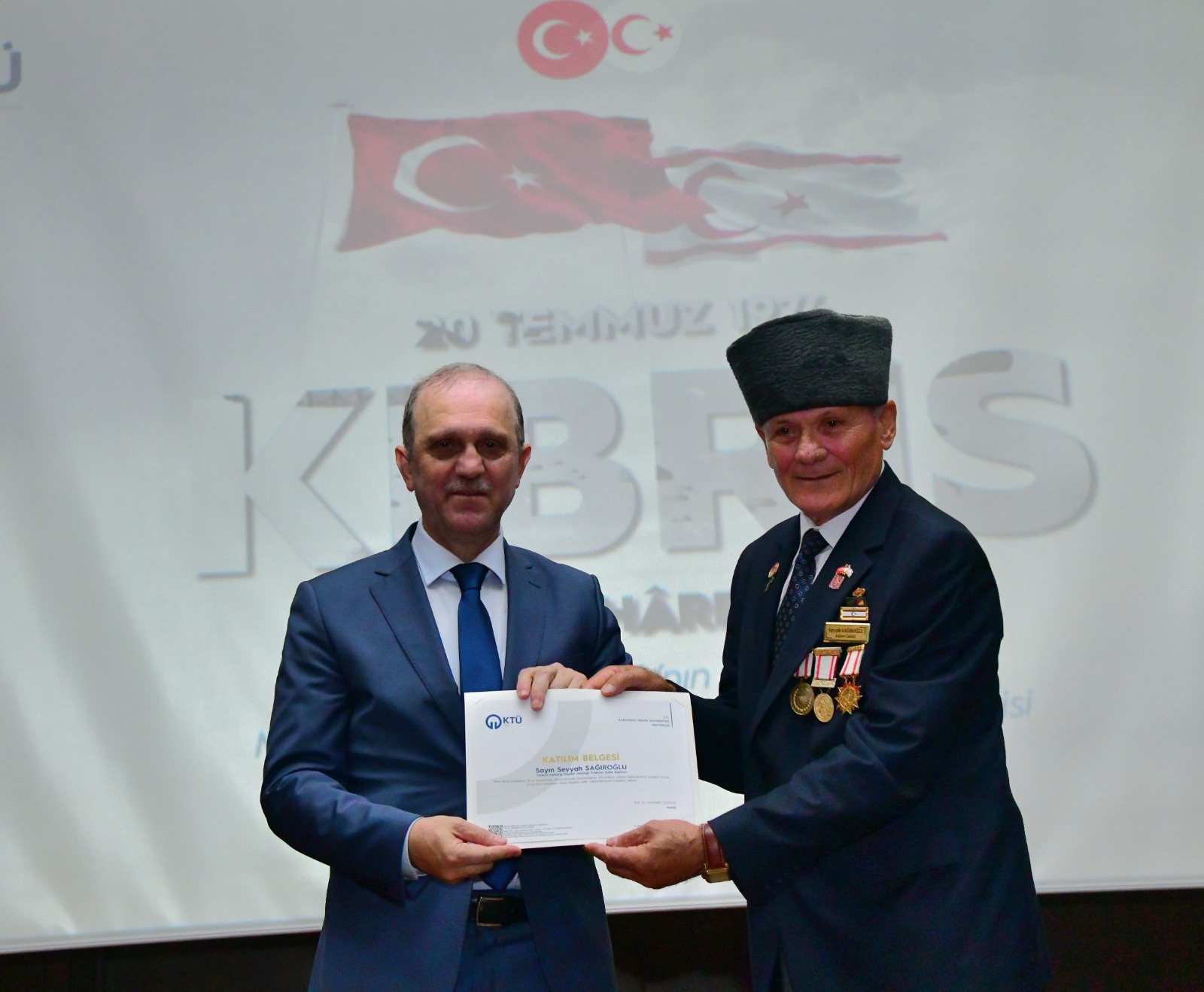 Etkinlikte Trabzon Muharip Gaziler Derneği Şube Başkanı ve Kıbrıs Gazisi Seyyah Sağıroğlu, “Tarihe Tanık: Ben Oradaydım” başlıklı konuşmasıyla harekâta dair anılarını paylaştı.