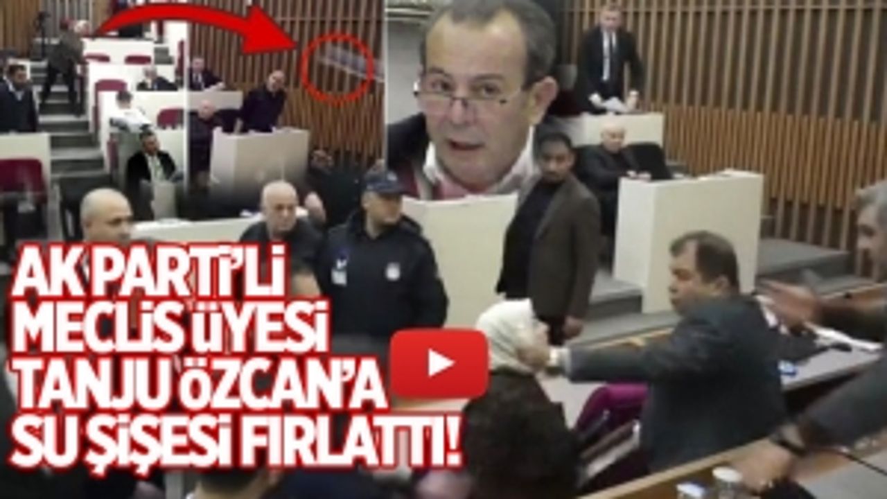 AK Partili meclis üyesi Hacer Çınar, Bolu Belediye Başkanı Tanju Özcan'a su şişesi fırlattı